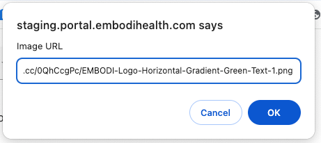 - That will cause a popup to appear. Please paste the “Direct Link” url and click OK: