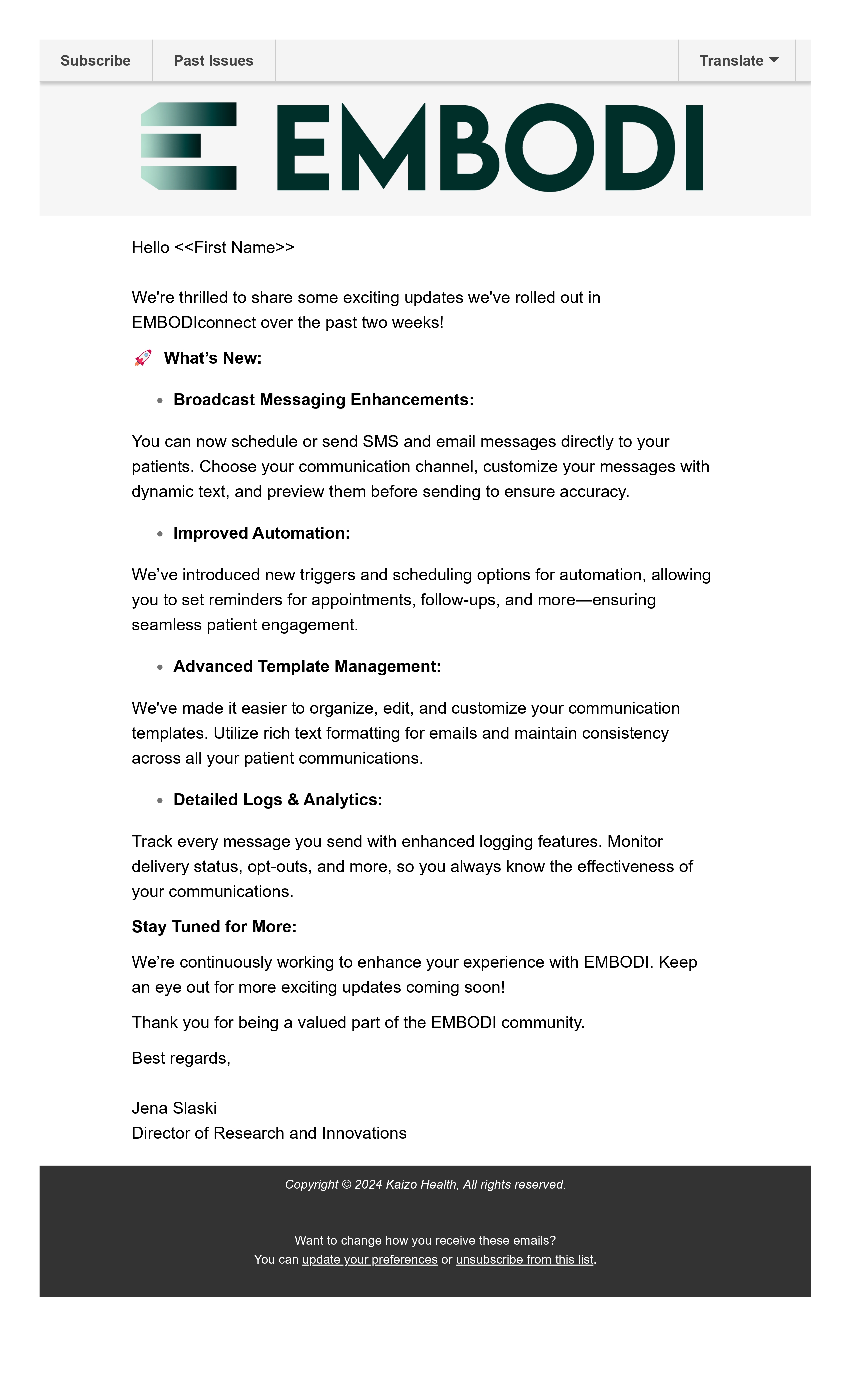 Exciting EMBODI Updates - See What's New - October 17, 2024 EMBODI Support February 17, 2025 19:47 Updated https://mailchi.mp/kaizenovate/exciting-embodi-updates-see-whats-new Related to EMBODI Updates What's New Release Notes Comments 0 comments Please sign in to leave a comment.