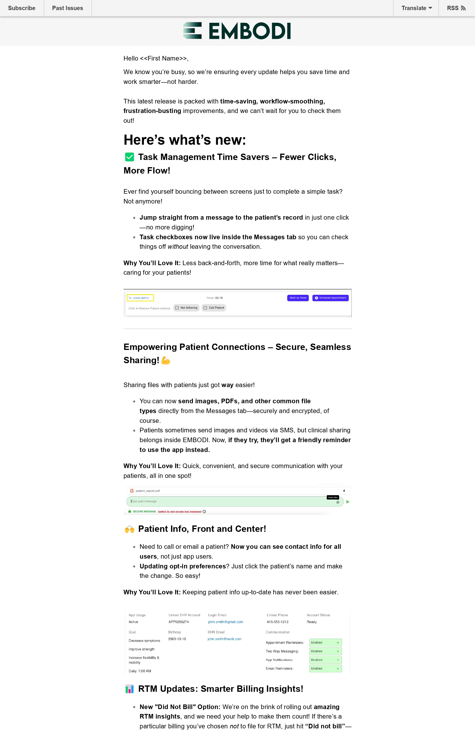 Big Updates: Less Clicking, More Doing! - February 21, 2025 EMBODI Support March 11, 2025 20:33 Updated Related to EMBODI Updates What's New Release Notes Comments 0 comments Please sign in to leave a comment.