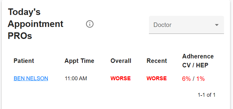 - the value comes from either the progress value on the most recent HEP log, or the since clinic improvement value on the most recent post appt survey - whichever of the two is more recent